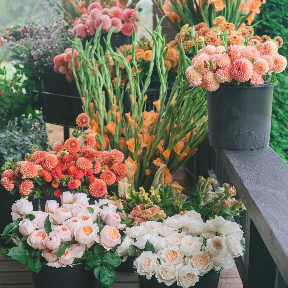 We pride ourselves on cultivating an exquisite selection of flowers using sustainable farming practices, ensuring every bloom is grown with care and consideration for the environment. As a local Asheville florist, Flourish Flower Farm specializes in custom floral design services tailored to each client's vision. Whether you are planning an intimate gathering or a grand celebration, our talented team works closely with you to create stunning arrangements that perfectly capture the essence of your event. Our designs are thoughtfully crafted to highlight the natural charm of our farm-fresh flowers, adding a touch of elegance and sophistication to weddings, anniversaries, events, and everyday occasions.